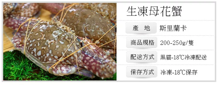 【優鮮配】斯里蘭卡母花蟹X7隻(200-250g-隻)是最近我買過算cp值蠻高的一個商品,下面是賣場提供的商品簡介: